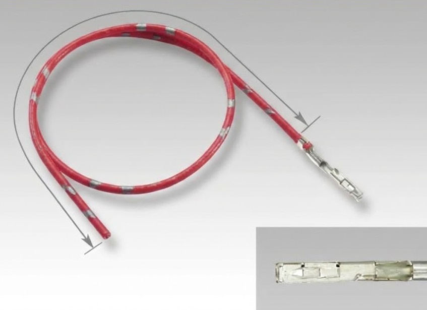 エンジンルーム内や車両の外部など、水や埃にさらされる環境では防水コネクタの使用が絶対条件になりますが、この太いインシュレーションバレルをゴム栓を傷つけることなく美しく丸め込むのは、専用のダイスがないと至難の業です。