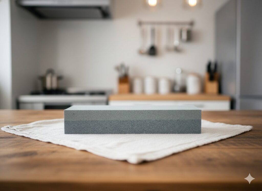 砥石は、刃先を理想的な角度に「整えながら研ぐ」ことができます。時間はかかりますが、包丁の性能を最大限に引き出し、長持ちさせることが可能です。ダイソーの砥石は番手が粗いものの、研ぎの基本を学ぶ練習台として、または後述する「面直し」用として非常に優秀です。