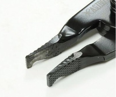 一般的な安価なラジオペンチの先端硬度では、Cリングの硬さに負けてしまい、先端がねじれたり欠けたりします。