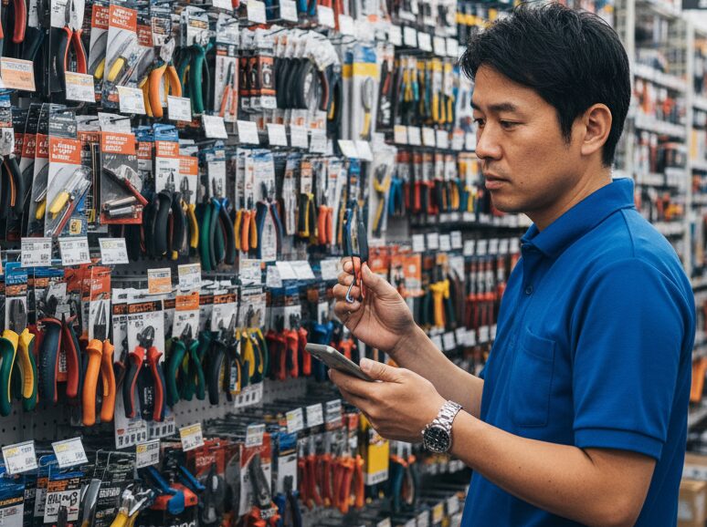 Eリングプライヤーは、専門的な工具ではありますが、比較的大きなホームセンターの工具売り場であれば、高い確率で入手可能です。一般的なペンチやプライヤーが大量に陳列されているコーナーの、少し専門的なツールがまとめられた区画を探してみてください。