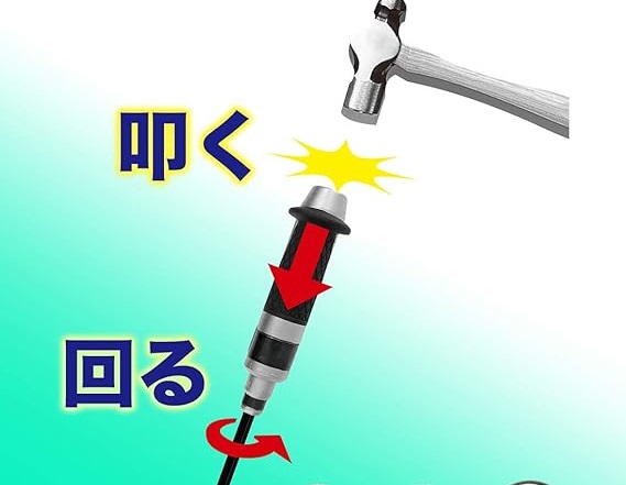 叩いた衝撃は回転力に変わると同時に、ビットをネジ頭に強く押し付ける力としても作用します。このため、ドライバーの先端がネジの溝から外れてしまう「カムアウト(なめる)」現象を効果的に防ぐことができます。「叩く力」「押す力」「回す力」が同時に作用する点が、この工具の最大の強みです。