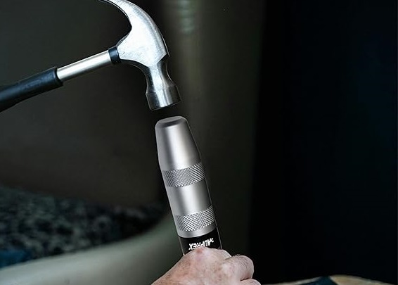 ハンマーを振り下ろす際は、手首のスナップを効かせるのではなく、腕全体で振り下ろし、インパクトの瞬間にさらに押し込むようなイメージを持つと、力が伝わりやすくなりますよ。